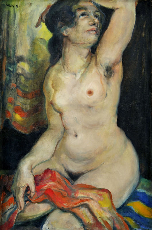 “Akt ženy” je kľúčovým dielom prvého vrcholu tvorby Júliusa Jakobyho. Obraz úzko súvisí s námetovo obdobným dielom “Ležiaci akt” (1934), za ktorý dostal umelec Cenu mesta Košíc. Pre Jakobyho to bol prvý spoločenský úspech. Všetko to bolo spojené s obsiahlym rozhovorom pre košický denník “Kassai újság”, v ktorom sa mladý Jakoby pokúsil sformulovať vlastné výtvarné krédo. Malo spočívať na odmietaní “technikárčenia” v prospech priameho maliarskeho prehovoru “skutočnosti”. Je zvláštne, že práve jeho vtedajšie akty do určitej miery takejto sebareflexii oponovali. Stali sa skôr dokladom vybrúsenej artistnosti. Skrátka - pohľad mladého Jakobyho bol nasmerovaný skôr dozadu, ponad exkluzivitu, ľavičiarsku zaujatosť experimentov košických modernistov, k politicky nezáväznej problematike európskej maľby rozhrania storočí. Z tejto perspektívy však mohol vo svojom košickom osamení dovidieť len jediného maliara – miestneho secesionistu Konštantína Köváriho, ku ktorému sa hlásil celkom otvorene. V tridsiatych a štyridsiatych rokoch sa pravidelne venoval pastelom, spracovaných köváriovskou technikou kresby na lúpanej lepenke, ktorá dodávala pastelu podobu pastóznej, špachtľovej maľby. Kövári mu však sprostredkoval viac: príklad maďarského Károly Ferenczyho, otca nagybánskej maliarskej školy a tým aj panorámu maďarského secesionizmu, symbolizmu a syntetizmu. Prvými dielami priznávajúcimi takýto Jakobyho príklon sú Autoportrét, 1929; Žena v bielom 1929; Žid 1929; príznačné vyjasnenou paletou, čistými kontúrovanými farebnými škvrnami, rozšafnou prácou s maliarskou hmotou, pôžitkárstvom duchovnej atmosféry obrazu. Nové boli i myšlienkové zámery. V niekoľkých ďalších vynikajúcich dielach čerpal Jakoby aj z časnejšieho príkladu Ripla-Rónaia. Maliarstvom Ripla-Rónaia bola sprostredkovaná najmä bonnardovská noblesa Jakobyho nádherných, eroticky vystupňovaných aktov.