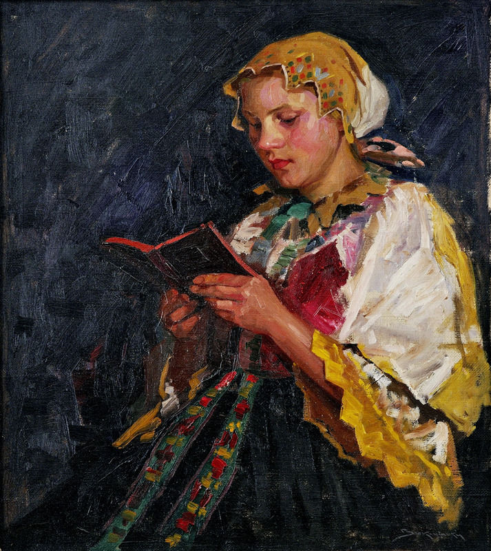 597,49,- € Žena v kroji. Okolo 1920. Olej na plátne. 68 x 48 cm. 5 000,- Sk (77. zimná aukcia, 27. 11. 2007)
