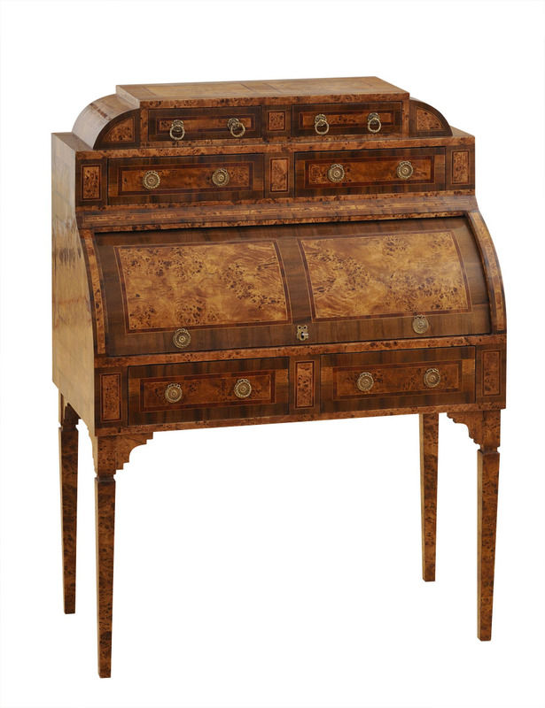Technika: orechová dyha, intarzia ovocnými drevinami