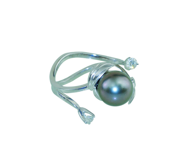Technika: 14 k biele zlato, 3 ks tahitských perál, 6 ks briliantov – 1 ks cca 0, 103 ct