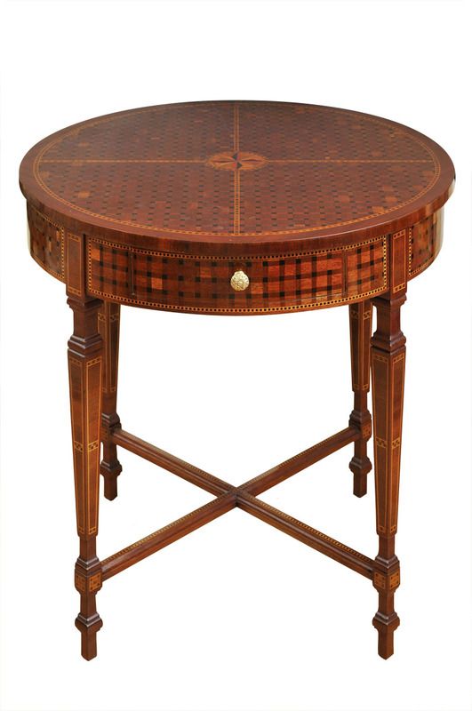 Technika: mahagónová dyha, intarzia ovocnými drevinami