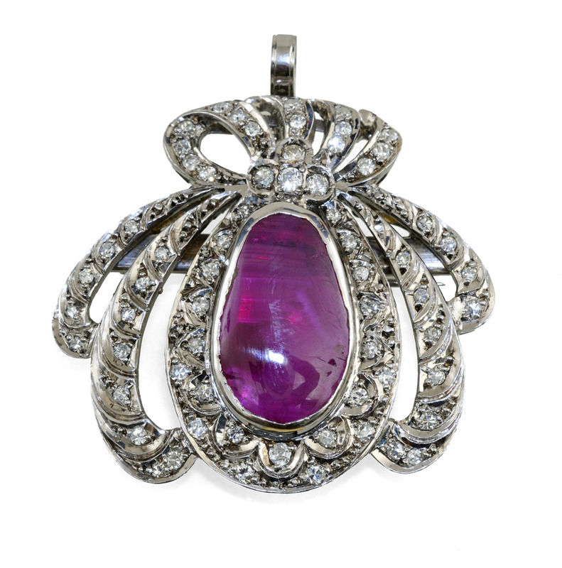 Technika: 18 k biele zlato, brilianty 1,6 ct, rubín kabošon