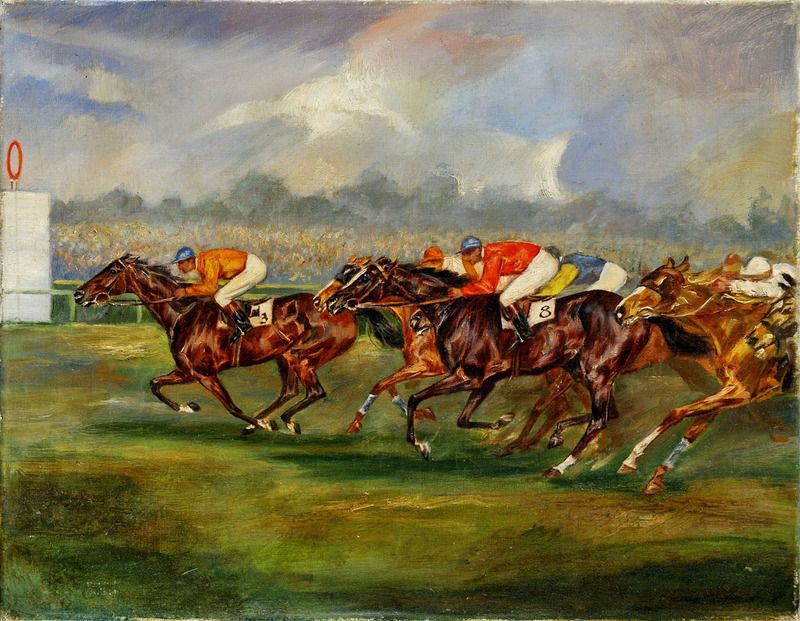 Biografia: Jeden z najvýznamnejších maliarov s témou dostihového prostredia všetkých čias, sir Alfred J. Munnings sa narodil v roku 1878 v Mendhame zomrel v roku 1959 v Castle House. V Norwichi začal ako 14-ročný s prácou v litografickej firme a súčasne tu navštevoval umeleckú školu. Po jej skončení sa začal venovať samostatnej umeleckej dráhe. Začal s vidieckymi témami, obrazmi koní a cigáňov. Už v roku 1899 sa začali jeho prvé diela obchodovať na trhu s umením a od tohto roku začal vystavovať v Kráľovskej akadémii. Počas 1. svetovej vojny maľoval v plenéri scény z jazdeckej kavalérie a jazdecké portréty. Od jej skončenia sa venoval skoro výhradne športovej tematike. V rokoch 1944-1949 bol prezidentom Kráľovskej akadémie. Z literatúry: Jean Goodman: The Life of Alfred Munnings 1878-1959. Edinburgh 2000. A. J. Munnings, An Artist´s Life. Bugnany 1950.
