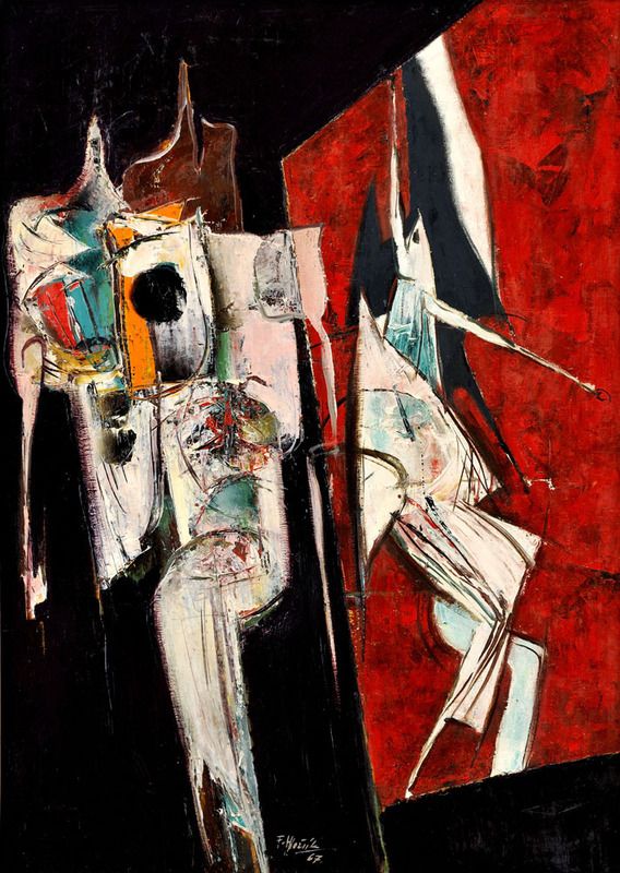 Biografia: Ferdinand Hložník sa narodil 18. 11. 1921 vo Svederníku pri Žiline. Zomrel 26. 2. 2006 v Bratislave. 1942–46 študoval na Oddelení kreslenia a maľovania SVŠT v Bratislave (prof. Mallý, Kostka, Mudroch). Od 1945 pôsobil v Skupine 29. Augusta Koncom 40. a začiatkom 50. rokov sa venoval pedagogickej činnosti ako profesor kreslenia na gymnáziu v Jure, neskôr na reálnom gymnáziu v Bratislave. Systematicky sa začínal venovať ilustrácii. Od 1945 pôsobil v Skupine 29. Augusta. Ilustroval učebnice, knihy a pedagogické pomôcky. V maliarskej tvorbe konca 40. rokov nachádza inšpiráciu v kubizmu. V 50. rokoch sa v jeho tvorbe objavuje téma vojnového utrpenia, ktoré sám ako mladý zažil, zároveň sa však často vracia do svojho rodiska na svedernícké polia a pastviny, okolie Váhu, ale aj na Oravu a Kysuce. Začína experimentovať s formou. V priebehu 60. rokov sa priklonil k abstrakcii, dôraz kládol na štruktúru a farebnosť maľby. Ťažisko jeho tvorby bolo predovšetkým vo voľnej, intímnej figurálnej a abstraktné tvorbe. V olejomaľbách, temperách ale aj značnom množstve kresieb nadväzuje na overenú expresívnu štylizácia predmetov, farebne usporiadaných plôch. Maľby spájajú v sebe figurálnu a fantazijné inšpiráciu, často sa v dielach vyskytujú osoby a veci blízke umelcovi.1967 mu bola udelená Cena Cypriána Majerníka. Vystavoval v Sao Paule (1965), Ríme a Neapole, Plzni, Bratislave a Berlíne. Z literatúry: Malý slovník slovenských výtvarných umelcov, SFVU 1981, Slovník súčasného slovenského umenia, SFVU 1967.